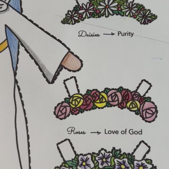 In May, we crown Mary with beautiful flower crowns to show our love for Our Mother. This DIGITAL DOWNLOAD is a great activity that you can print and use for Religious Education classes, fun at home to help your children enjoy and understand more about May Crowning, or even for you adults that enjoy coloring. The Paper doll is a classic Mother Mary, and you can crown her with four different flower crowns! Each crown is accompanied by a note that explains the symbolism of that flower.